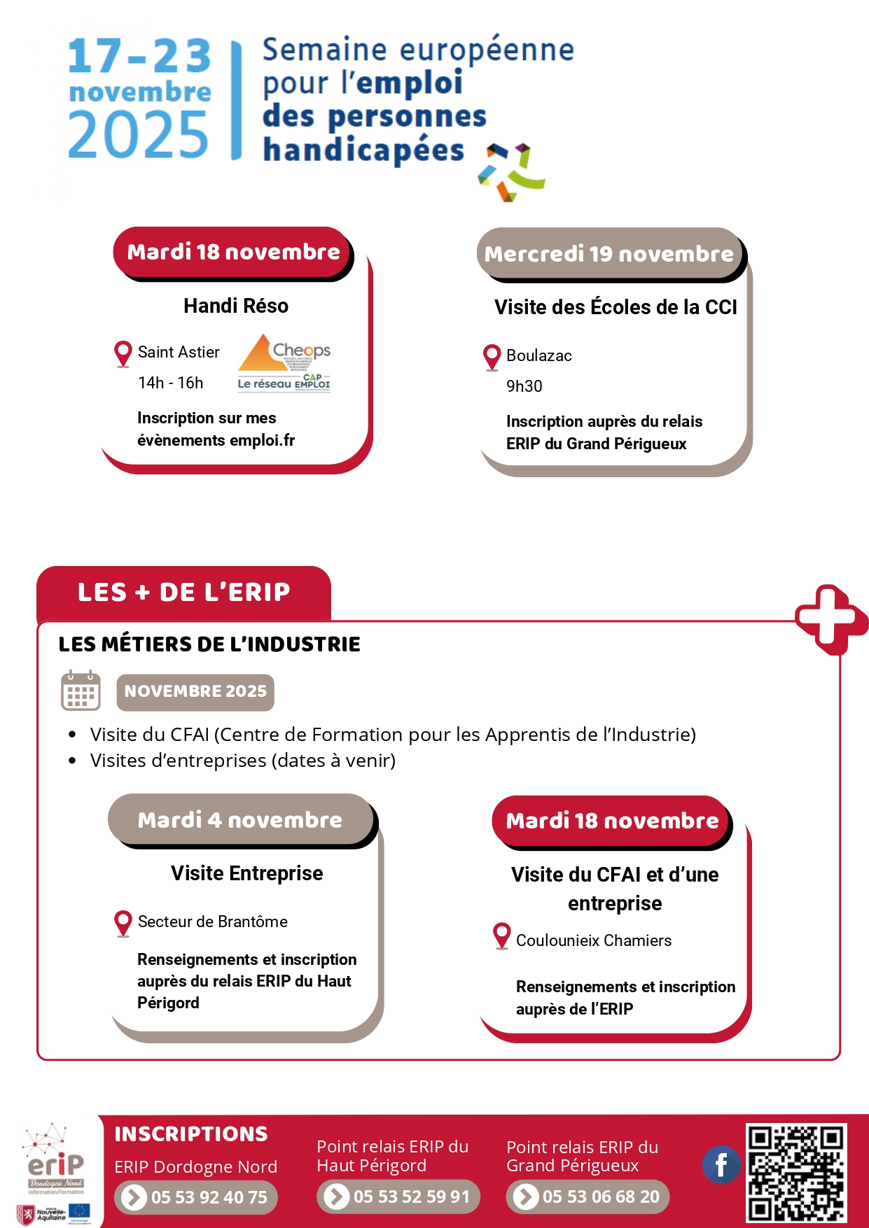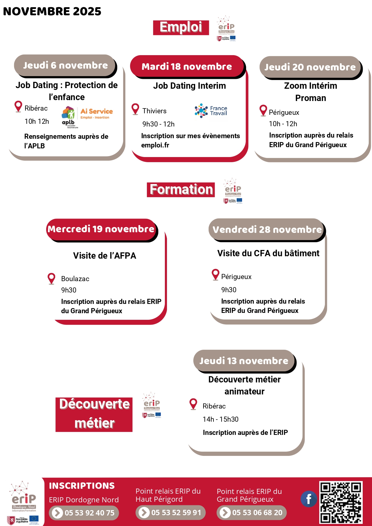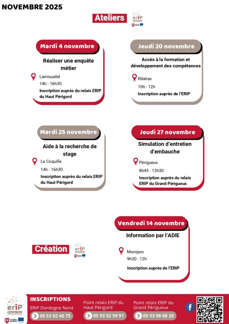 Portés et financés par la Région Nouvelle-Aquitaine, les ERIP sont des lieux d’accueil et d’information de premier niveau sur la formation, les métiers, la recherche d’emploi, la validation des acquis de l’expérience (VAE) ou encore la création ou la reprise d’entreprise…