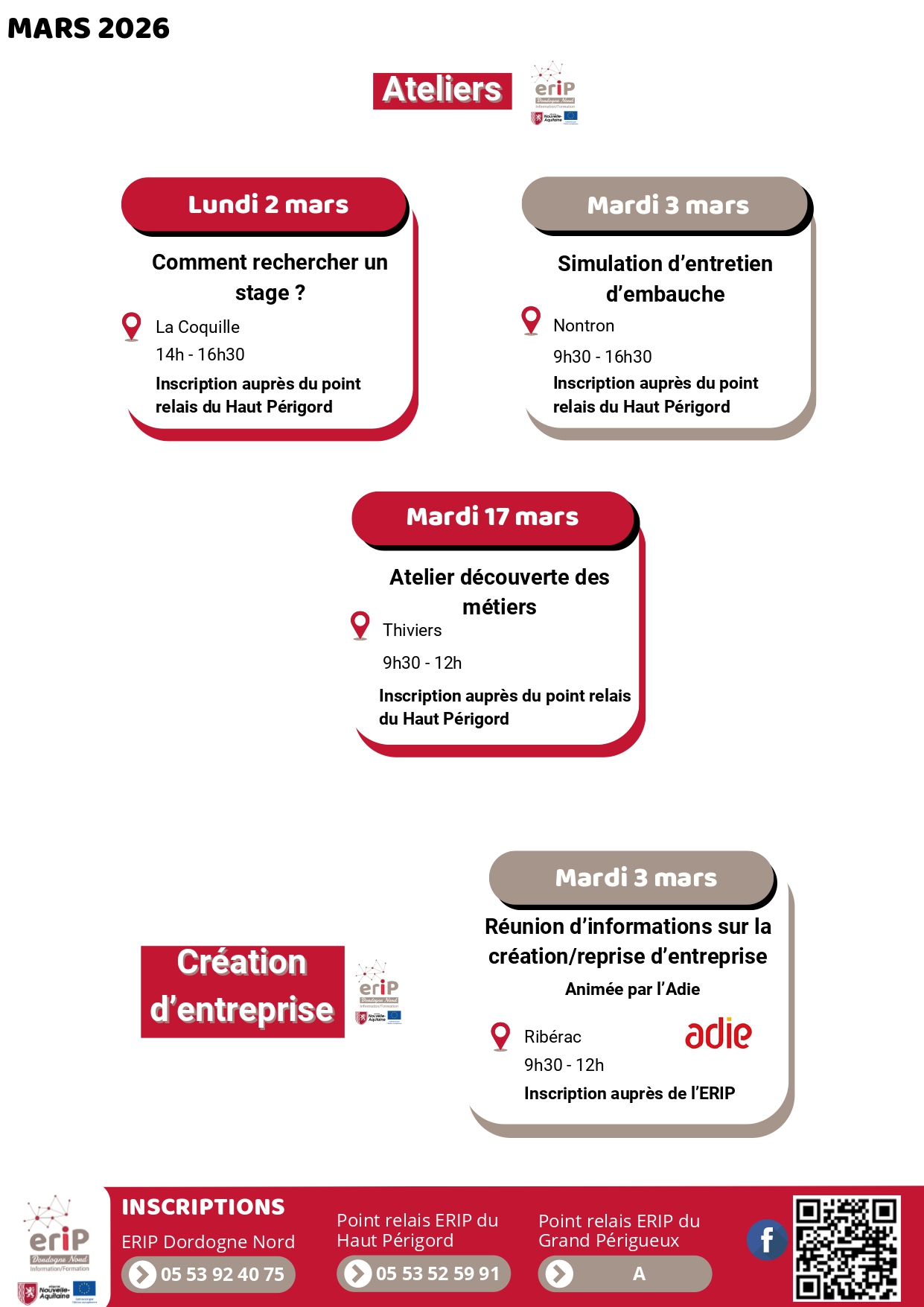 ⏰ Le Salon de l’Emploi de Périgueux arrive bientôt ! L’ERIP Dordogne Nord sera présent au Salon de l’Emploi pour vous accueillir, vous informer et